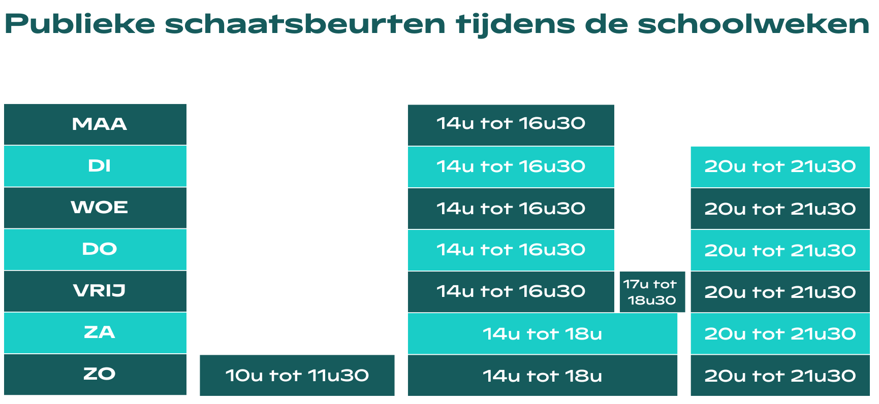 Je kiest bij het reserveren een aankomstmoment (een tijdslot van 30 minuten). Zodra je binnen bent, kan je blijven schaatsen tot het einde van de publieke beurt.